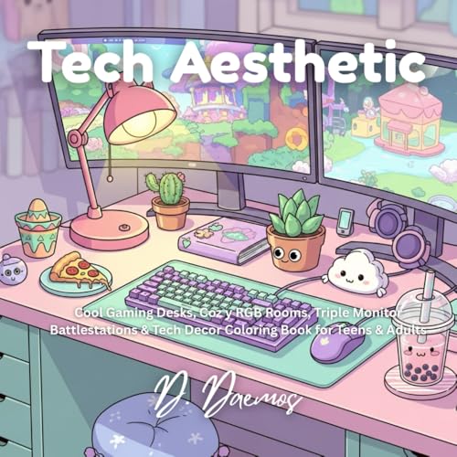 Tech Aesthetic: Cool Gaming Desks, Coz y RGB Rooms, Triple Monitor Battlestations & Tech Decor Coloring Book for Teens & Adults
