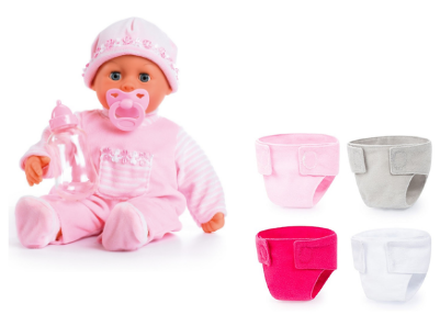 Bayer – Doll First Words Baby Pink 38 cm + Diaper Set Four Pieces - 2 pcs (Bundle)