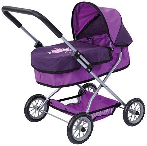 Bayer Design 14966AA Dockvagn, med integrerad korg, mjukt handtag, för dockor upp till 46 cm