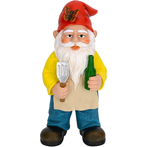 Mood Lab Garden Gnome – BBQ Chef Gnome – 25 cm hög staty gräsmatta trädgårdsfigur – för utomhus- och husdekor