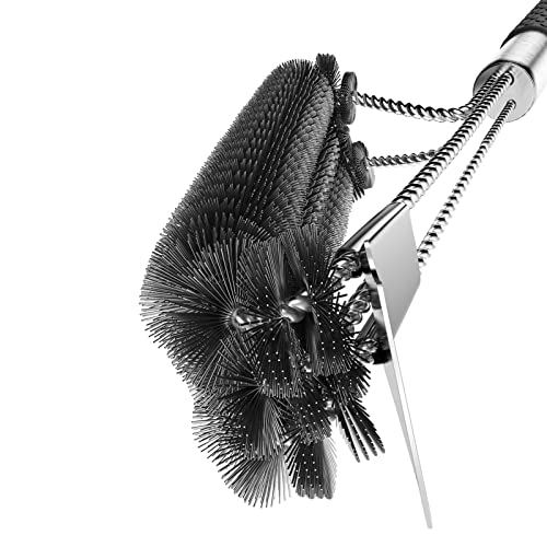TREBLEWIND BBQ grillborste för 360 graders rengöring, rostfritt stål med spatel och silikonisolerat handtag, 43 cm, grilltillbehör för porslins-/kolgrill – presenter till grill Wizard Grey M