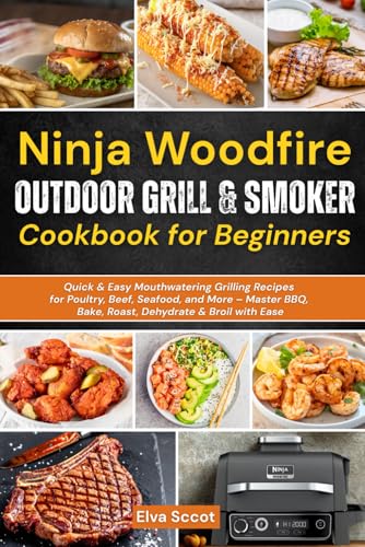 Ninja Woodfire Outdoor Grill & Smoker Cookbook for Beginners: Quick & Easy Mouthwatering Grilling Recipes for Poultry, Beef, Seafood, and More – Master BBQ, Bake, Roast, Dehydrate & Broil with Ease
