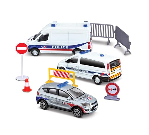 BBURAGO - Polisbil - Realistisk modellbil i skala 1:43 (slumpmässigt urval bland tillgängliga modeller), Officiellt poliskörkort, Rekommenderad ålder 3+ år