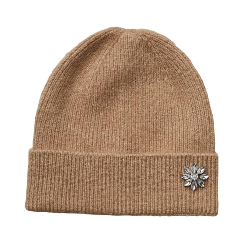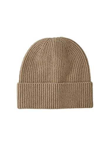 PIECES Dam PCBINA Wool Hood W. FOLD UP NOOS BC stickad mössa, Fossil, One Size