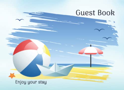 Guest Book: Enjoy Your Stay, Guest Comment with Ball Beach, Paper Boat, Umbrella Beach Theme