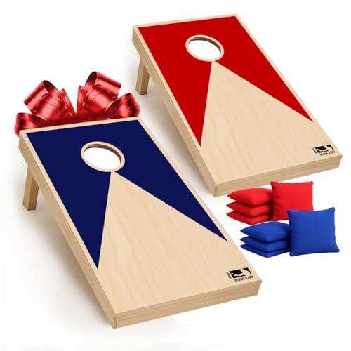 Original American Cornhole® Bleu&Red | Tossing Game | 100% Wooden| Premium Quality | Official Dimensions | 2 Boards + 8 Bean Bags + 1 Storage Bag | Outdoor & Beach Sport | OriginalCup®