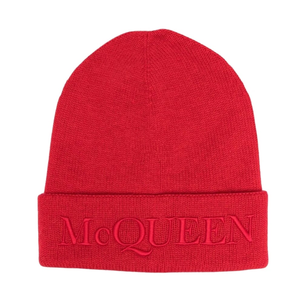 Alexander McQueen, Accessoarer , Dam, S, Kashmir, Röd Cashmere Beanie Mössa