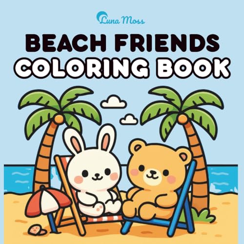 Beach Friends: Coloring Book for Adults and Kids, Bold and Easy, Simple and Big Designs Featuring Bears, Bunnies, Cats, Dogs, Coastal Scenes, Beach ... Seashells and More (Bold & Easy Coloring)