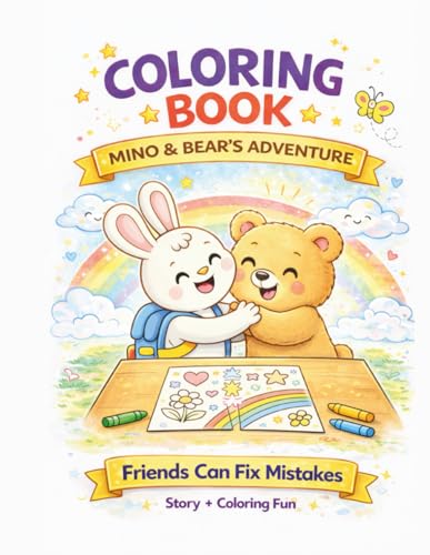 Mino & Bear's Adventure: Friends Can Fix Mistakes: Story + Coloring Fun Coloring Book for Toddlers and Preschool Kids
