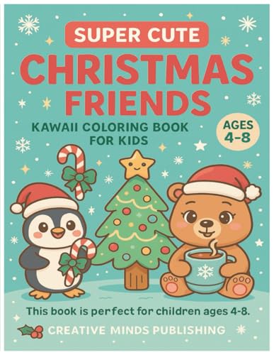 Super Cute Christmas Friends: Kawaii Christmas Coloring Book for Kids Ages 4–8: A Delightful Holiday Coloring Book Full of Cute Penguins, Bears, & Christmas Fun