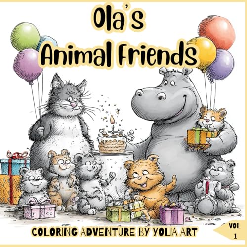 Ola’s Animal Friends Coloring Adventure by Yolia Art Vol. 1: Hours of Fun Coloring Cute Rabbits, Bears, Cats & Hippos for Kids, Teens & Adults