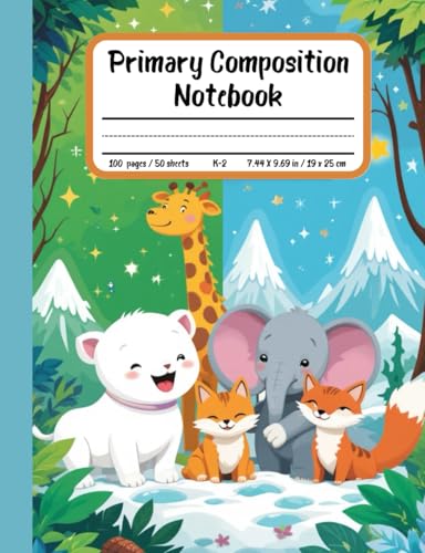 Wild Friends Primary Composition Notebook: Draw and Write Journal for Grades K-2 – With Picture Space and Fun Jungle & Arctic Animals like Giraffes and Polar Bears!