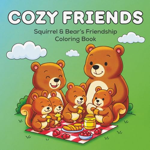 Cozy Friends: Squirrel & Bear’s Friendship Coloring Book. Stress Relief Coloring Book, Animals, Friendship, and Simple, Cute Art, Big, Bold, and Easy to Color Pages.