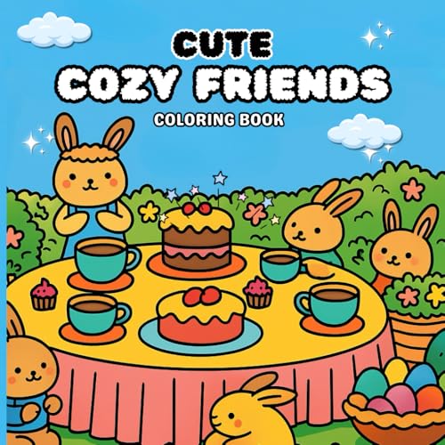 Cute Cozy Friends Coloring Book :: Adorable Animal Scenes Kawaii Bunnies, Bears,Cat and Friends to Color & Enjoy