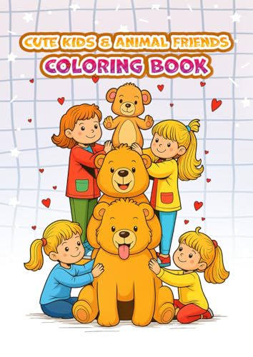 Cute Kids & Animal Friends Coloring Book: Cute Puppies, Kittens, Elephants, Bears & More for Ages 5-13