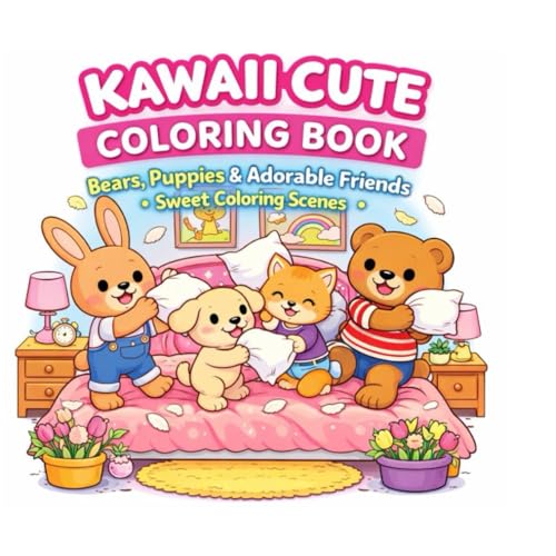 Kawaii Cute Coloring Book: Bears, Puppies & Adorable Friends – Sweet Scenes for Kids and Adults: A Whimsical Coloring Adventure Filled with Cozy Home ... Cute Kawaii Scenes for Relaxation and Fun
