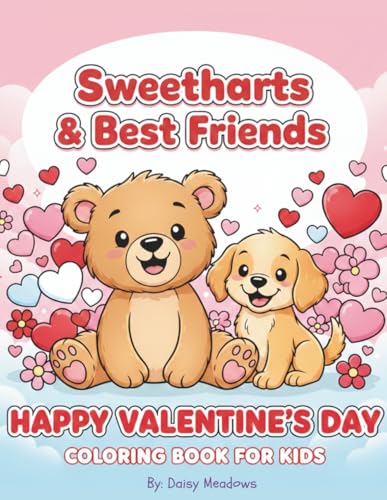 Sweethearts & Best Friends: A Valentine’s Day Coloring Book for Kids: Cute Animal Coloring Pages for Toddlers and Preschoolers, Ages 4-8 – Fun ... and Girls with Bears, Puppies, and Hearts