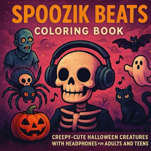 Spoozik Beats Coloring Book: Creepy-Cute Halloween Creatures with Headphones for Adults and Teens