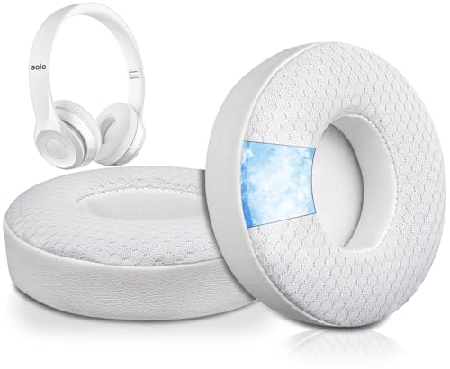 SoloWIT Kylande gel Ersättning öronkuddar för Beats Solo 2 och Solo 3 trådlösa ON-Ear-hörlurar, Solo2 Solo3 Öronkudde med hög densitet bullerisolerande skum, extra tjocklek - Vit