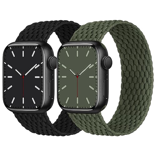 Solo Loop flätat armband kompatibelt med Apple Watch 38/40/41 mm, elastiskt nylonarmband för Apple Watch 9/8/SE/7/6/5/4/3/2/1, svart/armégrön, storlek M