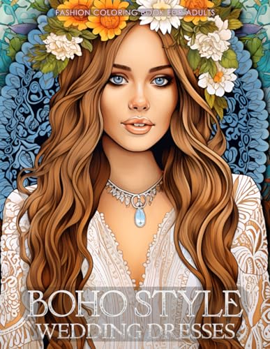 Boho Style Wedding Dresses - Fashion Coloring Book for Adults: Beautiful Models Wearing Bohemian Chic Bridal Gowns