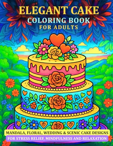 Elegant Cake Coloring Book for adults: Mandala, Beautiful Floral, Wedding & Scenic Designs for Stress Relief and Relaxation