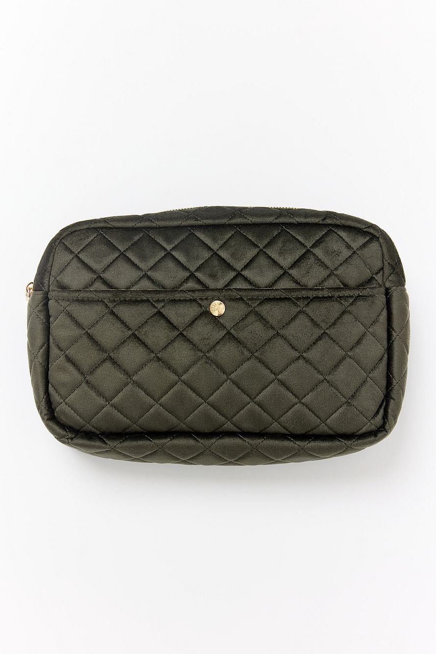 Fan Palm Beauty Bag Quilted Velvet Black Medium