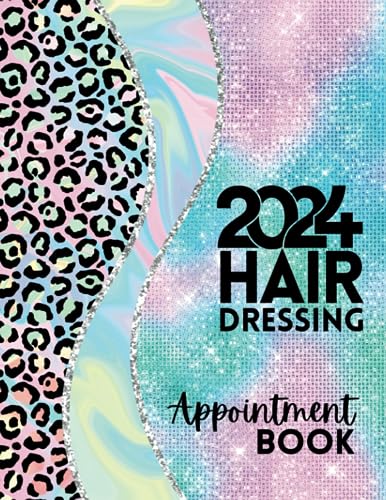 Hairdressing Appointment Book 2024: Dated Client Scheduler & Daily Planner For Beauty Therapist, Salon, Mobile Hairdresser With 15 Minute Increments, 52 Weeks, Holographic Iridescent Leopard