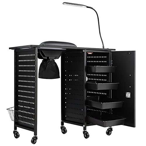 Kalolary Manikyrnagelbord, mobil nagelstation med nageldammuppsamlare, 4 lådor, LED-lampor, handledsstöd för Home Technician Spa Beauty Salon arbetsstation