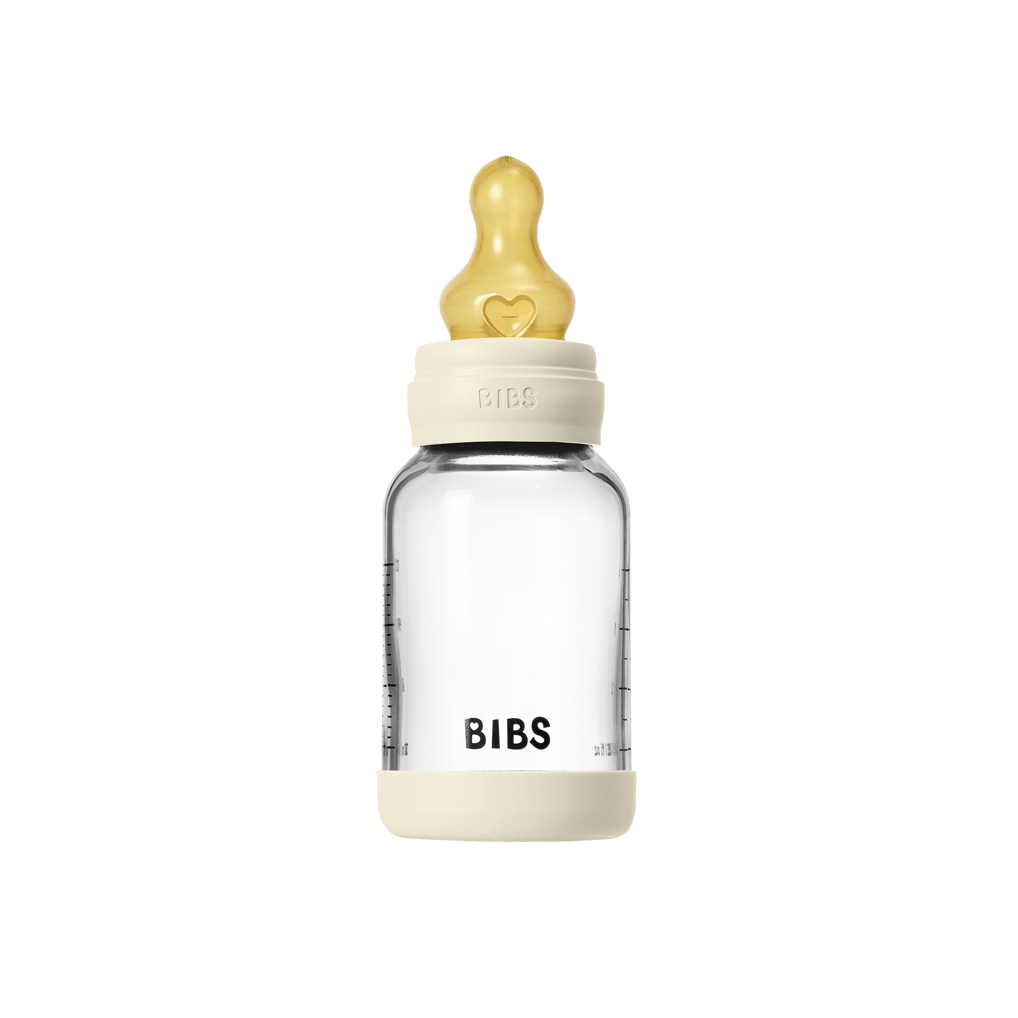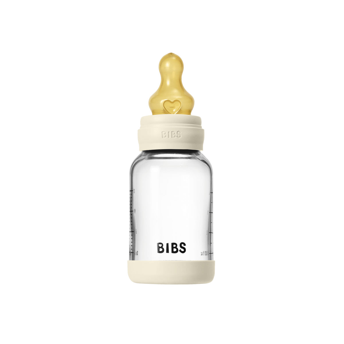 BIBS Glass Baby Bottle Round Latex Slow Flow 120 ml Ivory