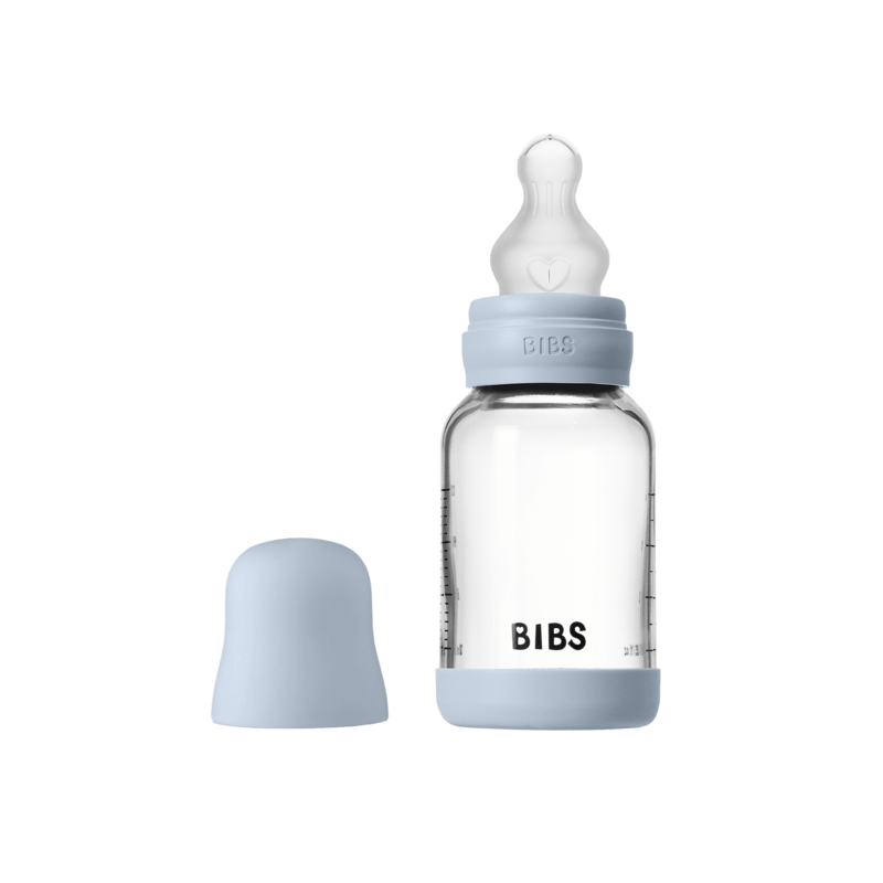 BIBS Glass Baby Bottle Round Latex Slow Flow 120 ml Baby Blue