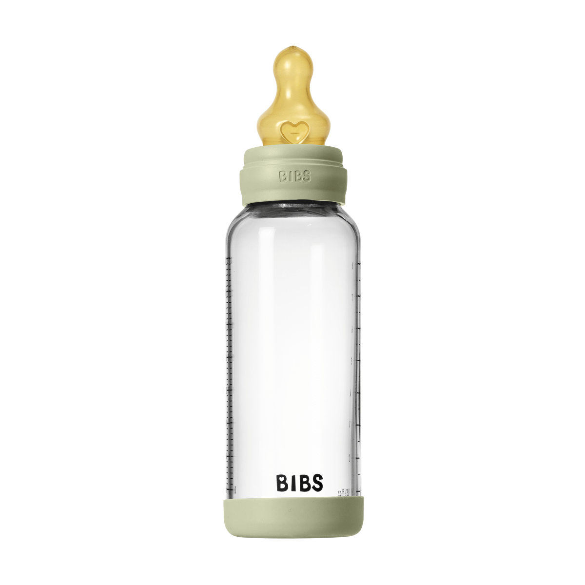BIBS - Glass Baby Bottle Round Latex Medium Flow - Sage - 240 ml