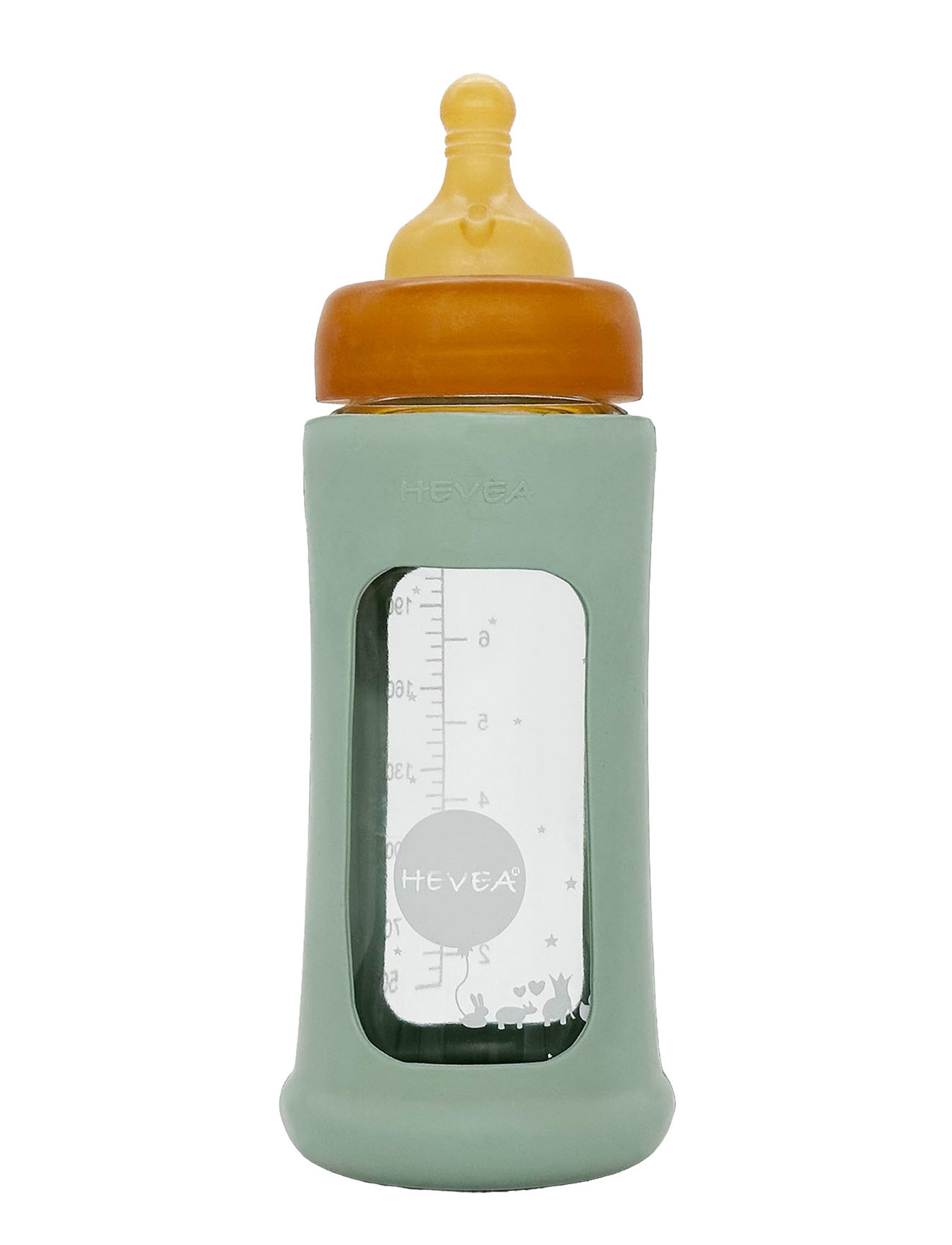 HEVEA Wide Neck Baby Glass Bottle With Sleeve 250Ml/8.5Oz Single-Pack Beige