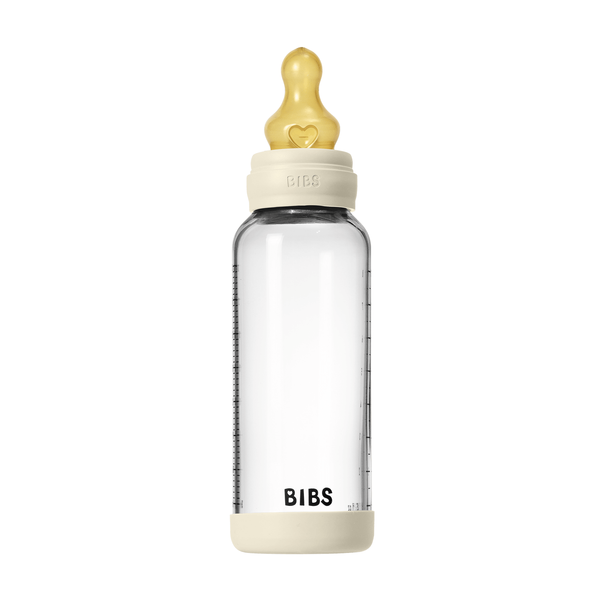 BIBS Baby Glass Bottle. Antikolik. Rund sugdel i naturgummilatex. Främjar naturlig amning, 240ml, Complete Set - Ivory