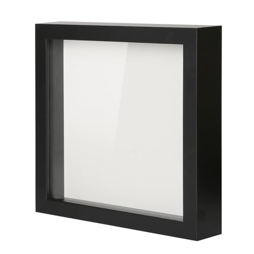 Muzilife 8x8" Shadow Box Picture Frame with Linen Board - Deep Wood & Glass Display Case Ready to Hang Memory Box Baby Sports Memorabilia, Pins, Awards, Medals, Wedding, Tickets and Photos (Black)