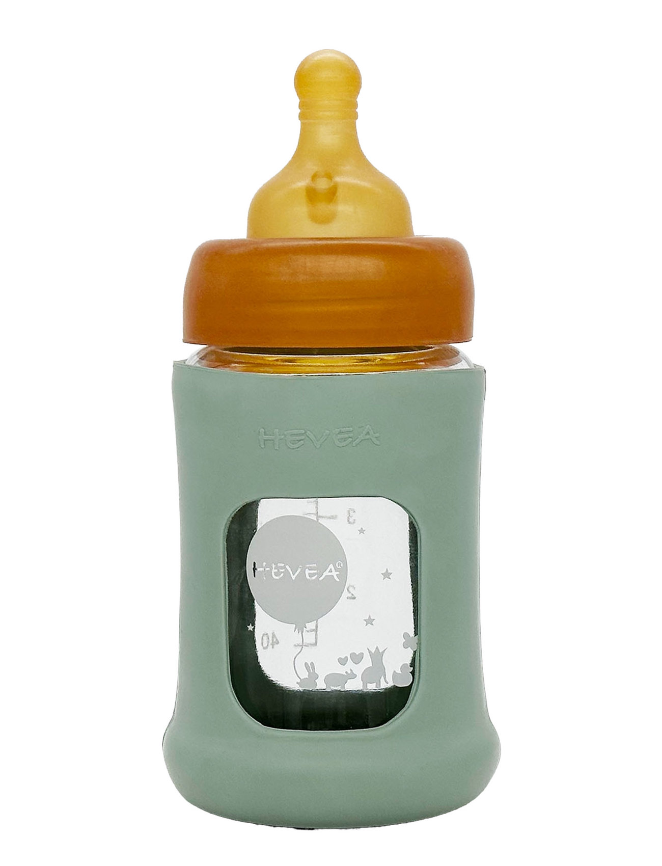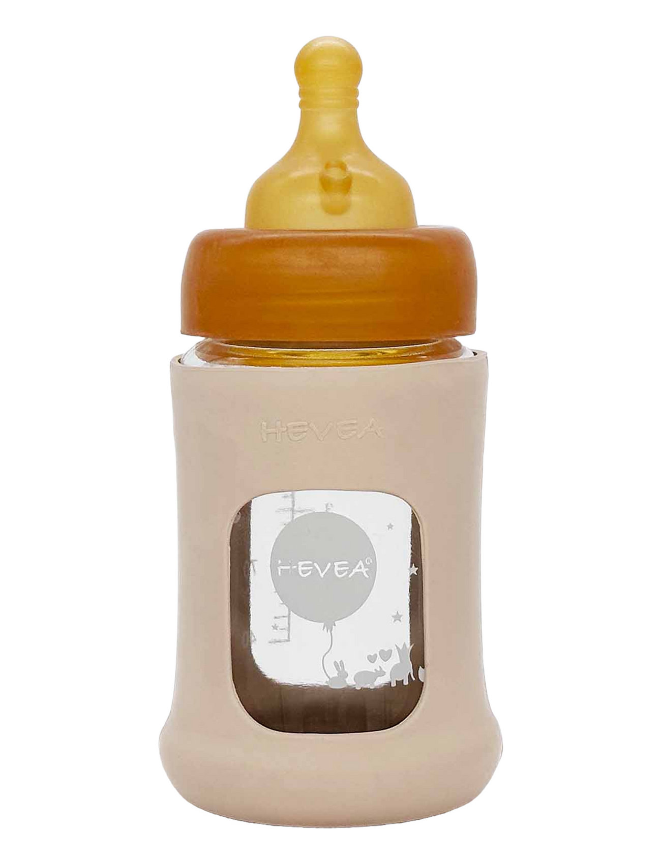 HEVEA Wide Neck Baby Glass Bottle With Sleeve 150Ml/5Oz Single-Pack Beige