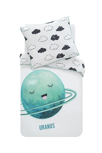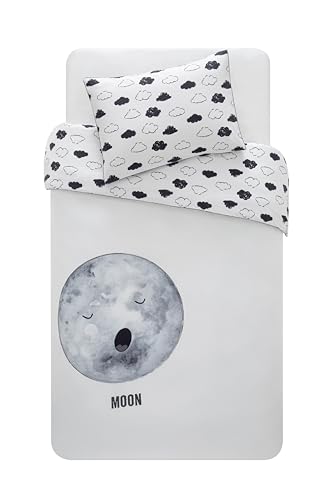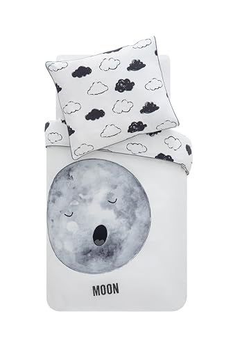 Herding Baby Best flanellsängkläder Sleeping on The Moon, Made IN Green by Oeko TEX, örngott 40 x 60 cm med hotellinlägg, påslakan 100 x 135 cm med knappstängning, bomull, flanell