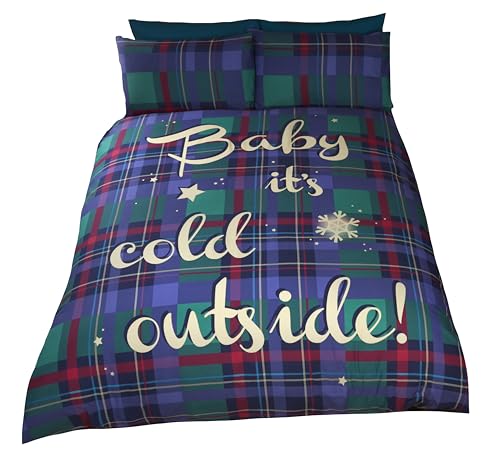'Baby It's Cold Outside Tartan rutig påslakan och 2 örngott sängkläder set Double BLÅ