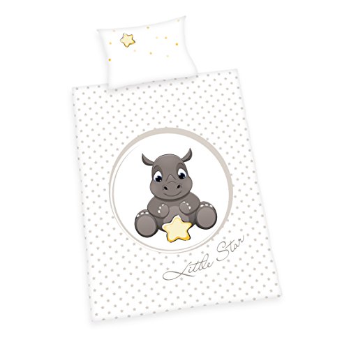 Herding Baby Best småbarnssäng-set, Jana Nashorn vändbart motiv, påslakan 100 x 135 cm, örngott 40 x 60 cm, bomull/förnyelse