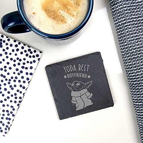 eBuyGB Personlig fyrkantig skiffer underlägg, graverad baby Yoda-underlägg, Star Wars tema dryckesmatta, roliga presenter till partner (Yoda Best Boyfriend)