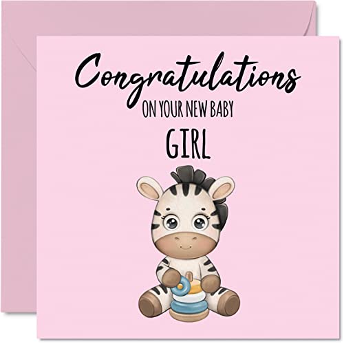 Nytt flickkort – ny baby flicka – grattis baby flicka kort nyfödda, välgjort gratulationer nya babykort, välkommen till världen hem presenter, 145 mm x 145 mm baby gratulationskort för föräldrar