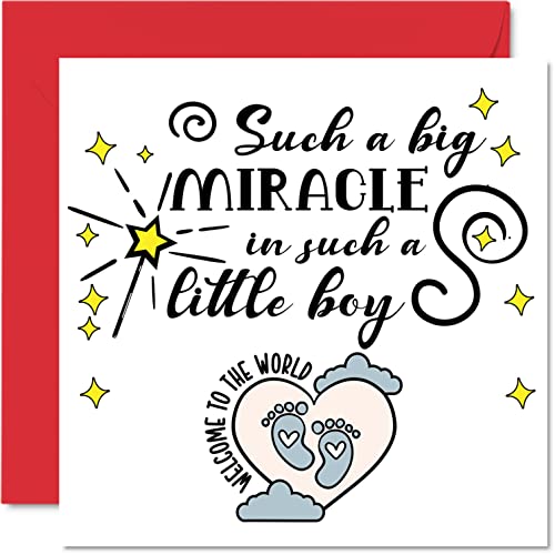 Nytt babykort – stort mirakel – grattis baby pojke kort nyfödda, välgjort gratulationer nya babykort, välkommen till världen hem presenter, 145 mm x 145 mm baby gratulationskort för föräldrar