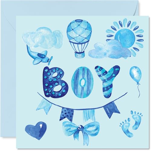 Nytt babykort – ny son – grattis baby pojke kort nyfödda, välgjort gratulationer nya babykort, välkommen till världen hem presenter, 145 mm x 145 mm baby gratulationskort för föräldrar