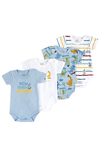 Chicco, Nyfödd pojkbody i 4-pack, kortärmad body i 100% bomull, bebiskläder 0–24 månader, designad i Italien, Vit, blå, 9 månader
