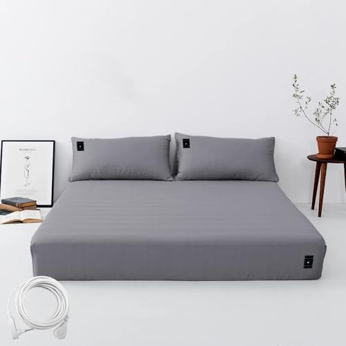 NIULAFR Grounding Sheets King Size Grounding Fitted Sheet with Cord, Natural Healthy Sleep Solution, Deep Pocket Grounding Bed Cover for Enhanced Well-Being(King,76x80x14in, Gray)