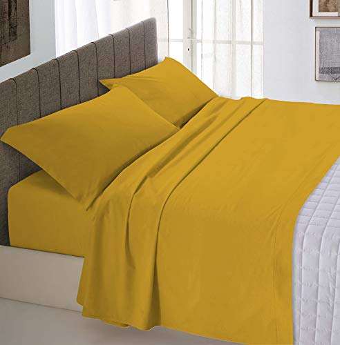 Italian Bed Linen Underlakan med hörn Max Color, 100% bomull, senap, dubbel