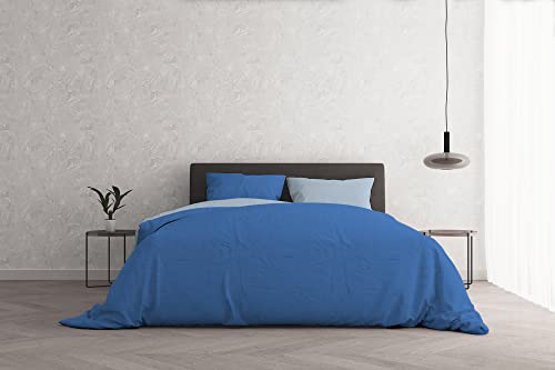 Italian Bed Linen Natural Color sängkläder set, 100% bomull, kunglig/ljusblå, dubbel