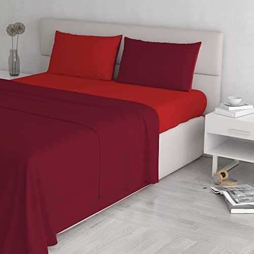 Italian Bed Linen Max färg underlakan med hörn och elastisk enfärgad, 100% bomull, vinröd, en fyrkant, 1 och en halv sits