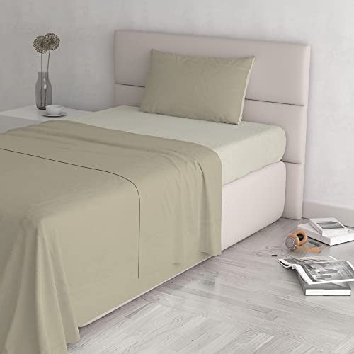 Italian Bed Linen Sängset i naturlig färg (platt 180 x 300, dra-på-lakan 120 x 200 cm + örngott 52 x 82 cm), bensinflaska grön, 100% bomull, avio/rök, liten dubbel