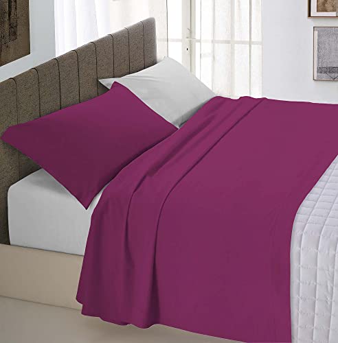 Italian Bed Linen Max färg för king size-lakan, 100% bomull, plommon, 2-sits maxi